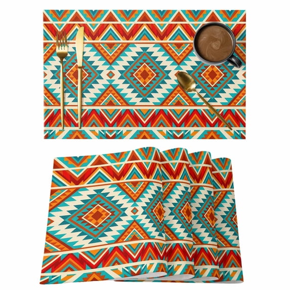 Abstract Ethnic Geometric Texture Placemats Set of 6,Wipeable Washable ...