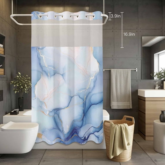 Abstract Ocean Marble Texture No Hook Shower Curtain with Snap in Liner ...