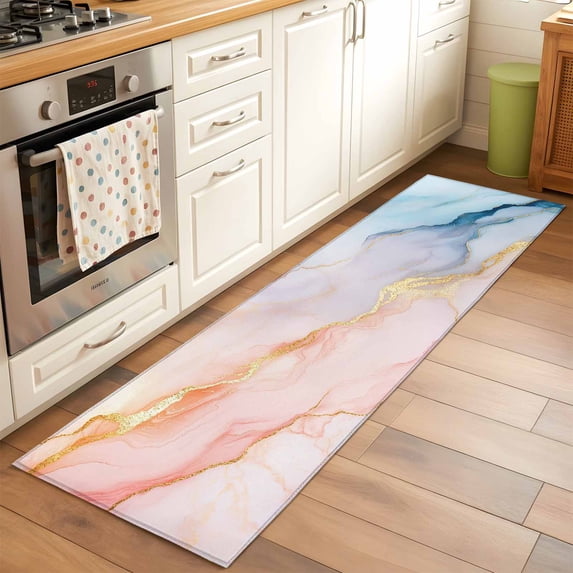 Area Rug 2x6ft Marble Texture Washable Area Rugs for Living Room Gold ...