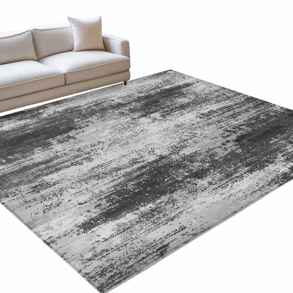 Black Gray Rectangle Rug 6'x9' Abstract Smoky Texture Distressed ...