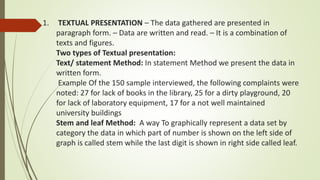 #1 Textual Presentation of Data l Presentation of Data l Meaning and ...