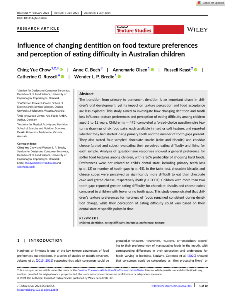 Children's Food Texture Preferences | PDF | Mouth | Dental Anatomy