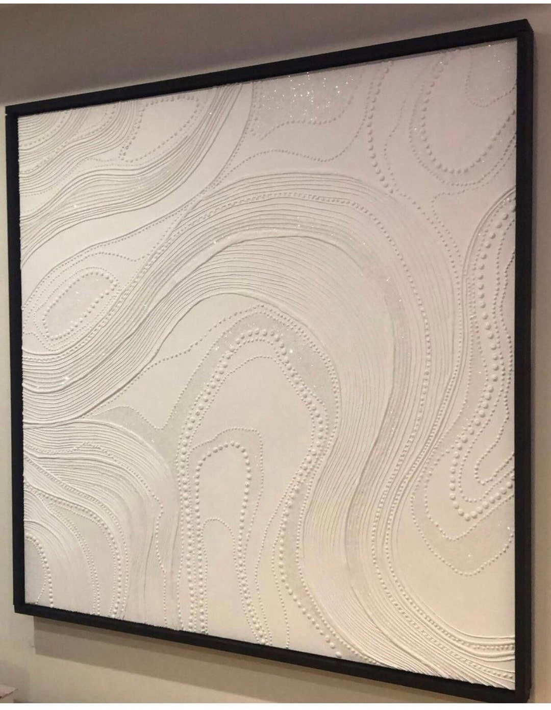 Original White Fabric Textured, Abstract Canvas Painting, Large Plaster ...