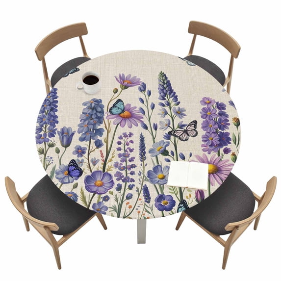 Blue Purple Floral Round Fitted Tablecloth Spring Lavender Wildflowers ...