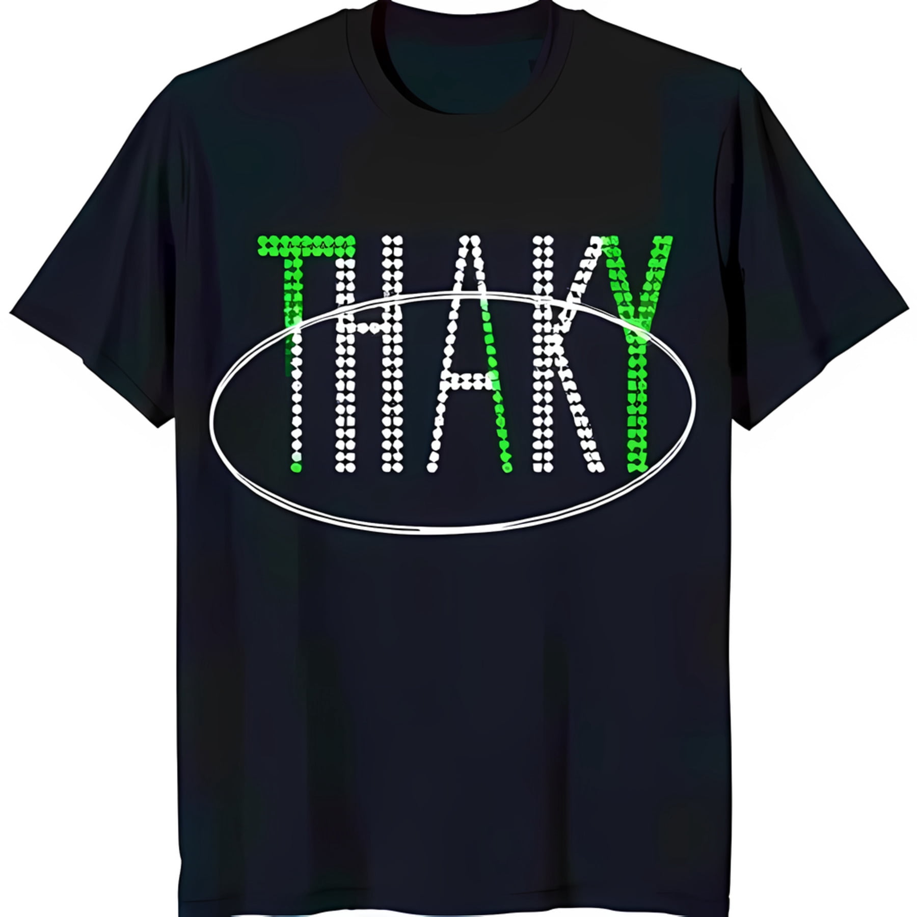 Black T-Shirt with 'THAKY' in Green & White Circle Design Unique Oval ...