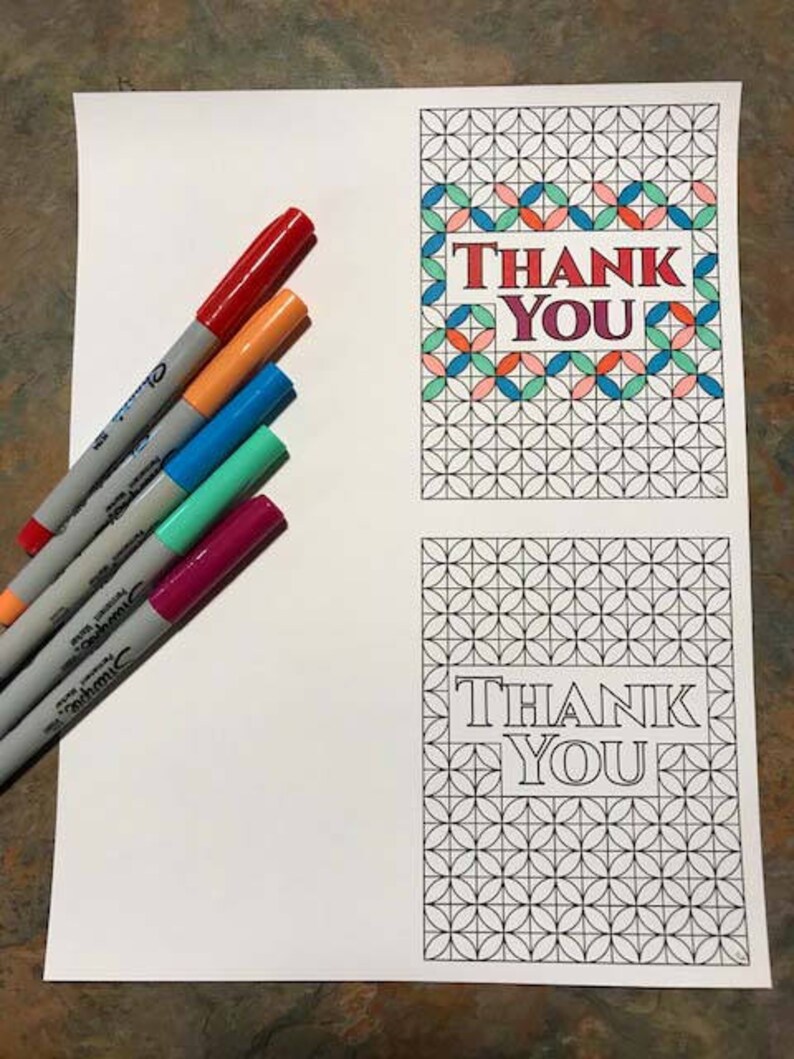 Thank You Card with Geometric Designs PDF Zentangle Coloring | Etsy
