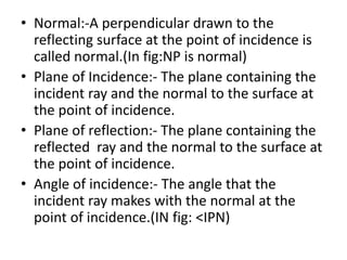 Laws of ReflectionThe angle between the normal and incident ray is calle..