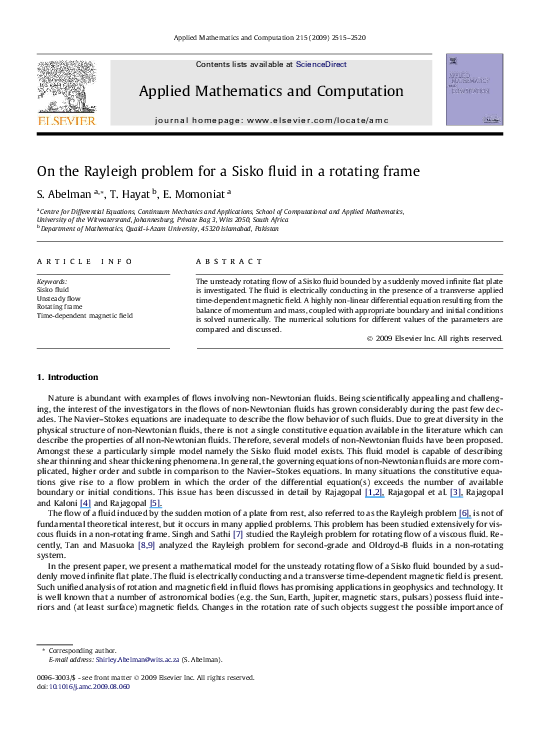 (PDF) On the Rayleigh problem for a Sisko fluid in a rotating frame