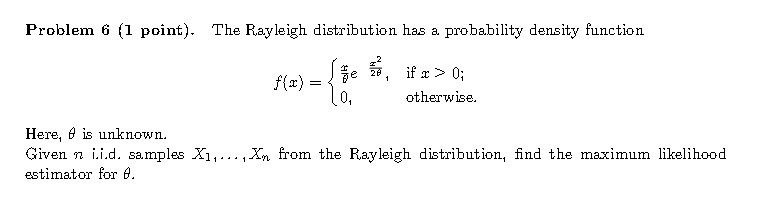 Solved Problem 6 (1 point). The Rayleigh distribution has a | Chegg.com