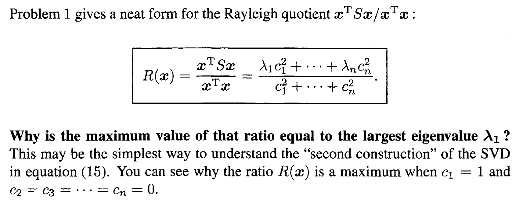 Solved Problem 1 gives a neat form for the Rayleigh quotient | Chegg.com