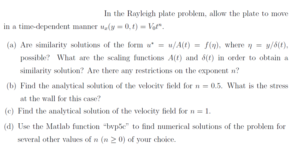 Solved 4. Consider the Rayleigh problem, but allow the plate | Chegg.com