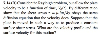 Solved 7.14 (B) Consider the Rayleigh problem, but allow the | Chegg.com