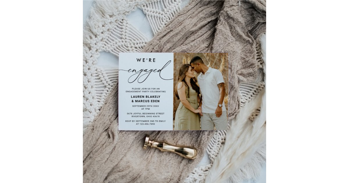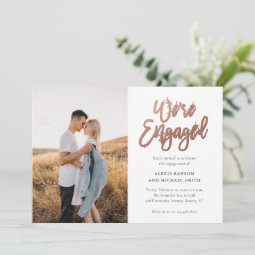 Modern Script We're Engaged Photo Engagement Party Invitation | Zazzle