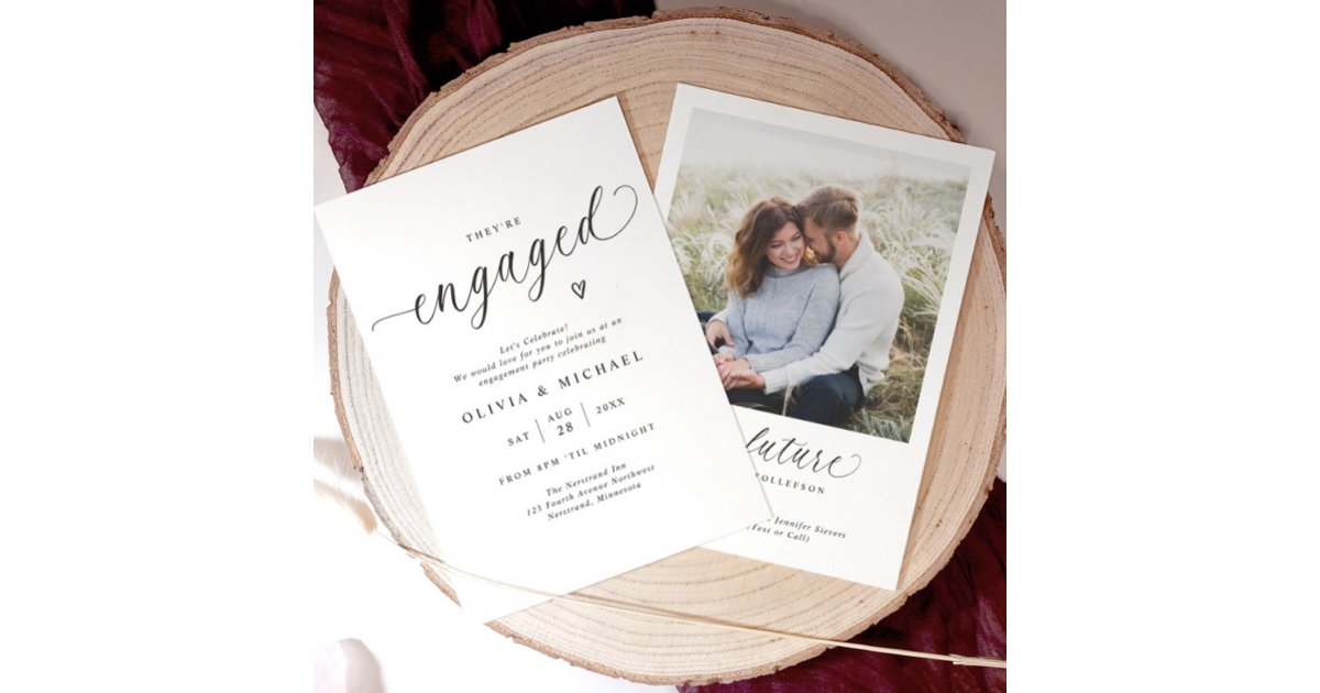 Engaged | Script Letter Style | Minimal Invitation | Zazzle