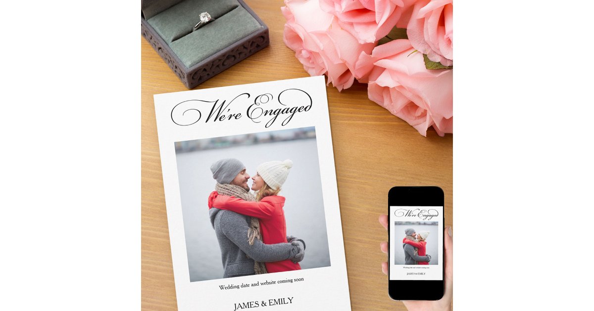 Elegant We're Engaged Script Photo Engagement Announcement | Zazzle