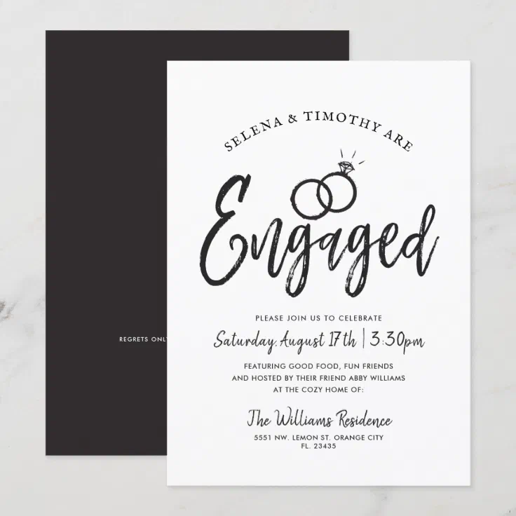 Elegant Engaged Modern Script Engagement Party Invitation | Zazzle