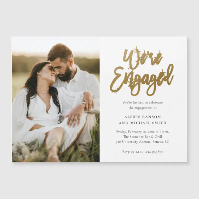 Modern Script We're Engaged Photo Engagement Party Magnetic Invitation ...