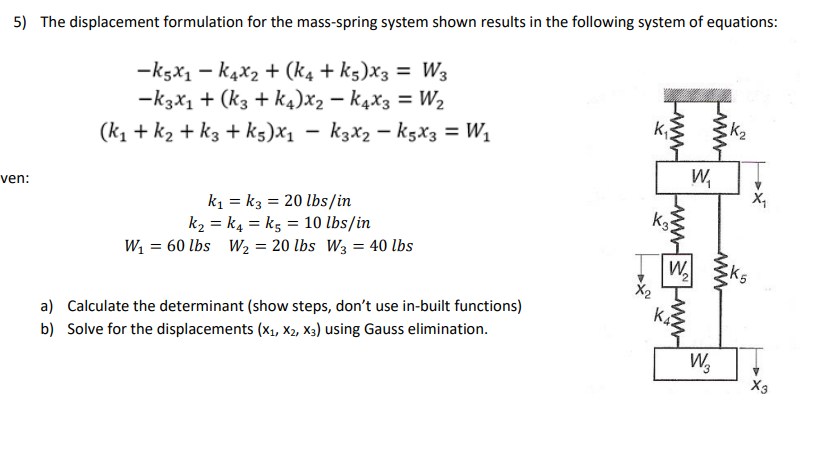 Solved 5) The displacement formulation for the mass-spring | Chegg.com