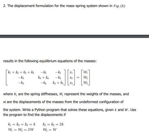 Solved 2. The displacement formulation for the mass-spring | Chegg.com