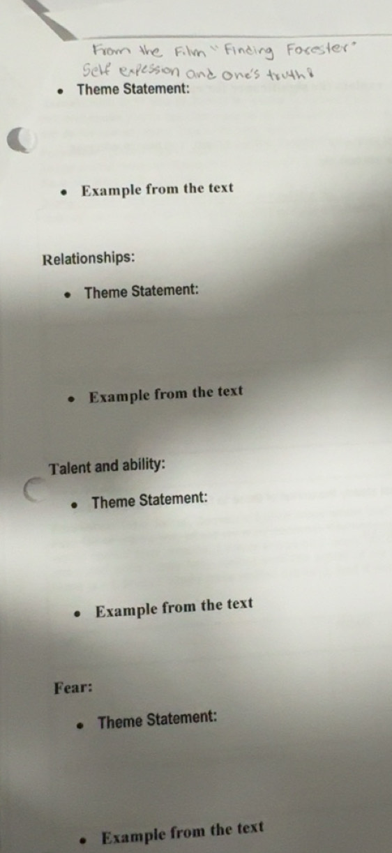 Thematic Statement Worksheet for Middle School Literacy