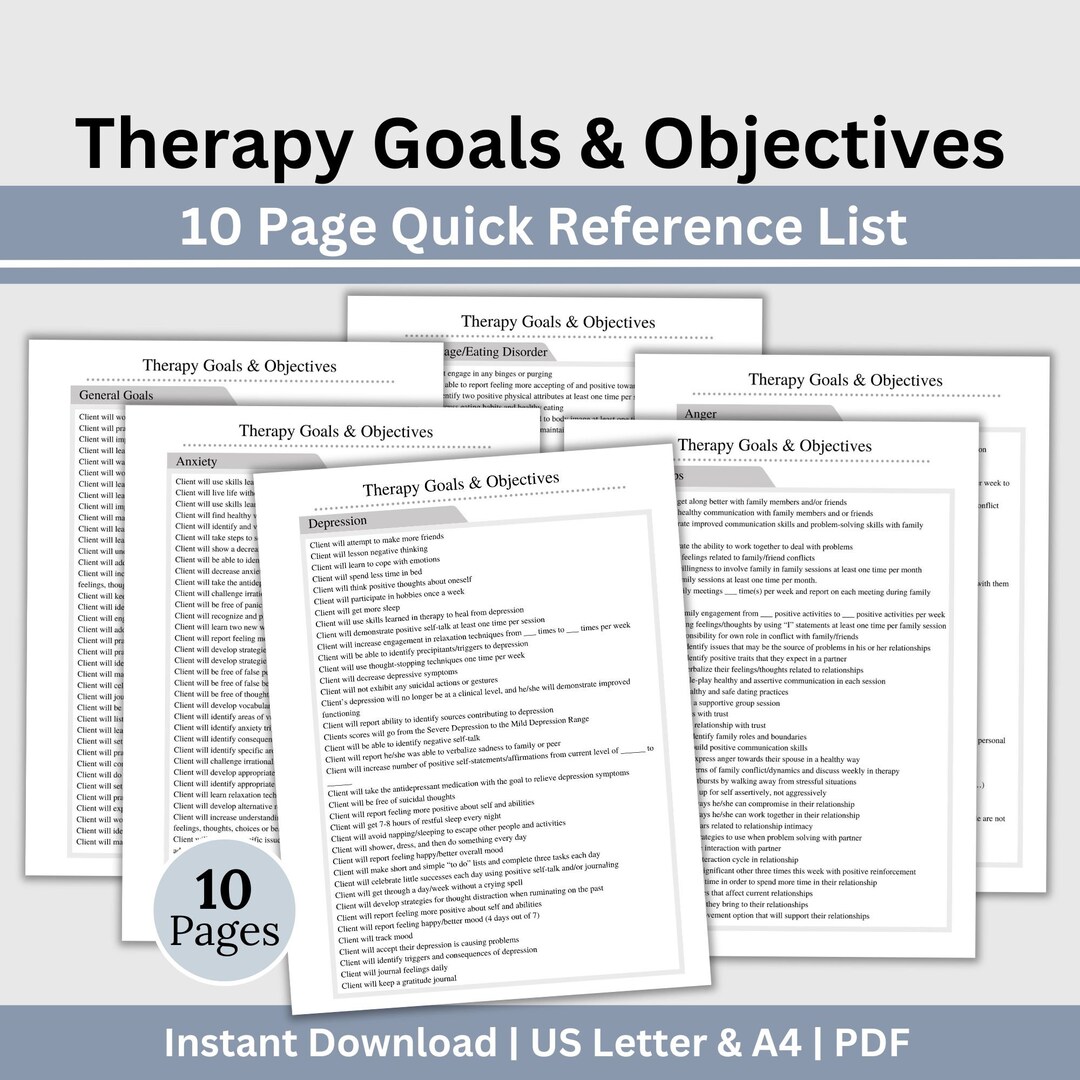 Therapy Goals and Objectives Bundle: Clinical Notes & Cheat Sheets (PDF ...