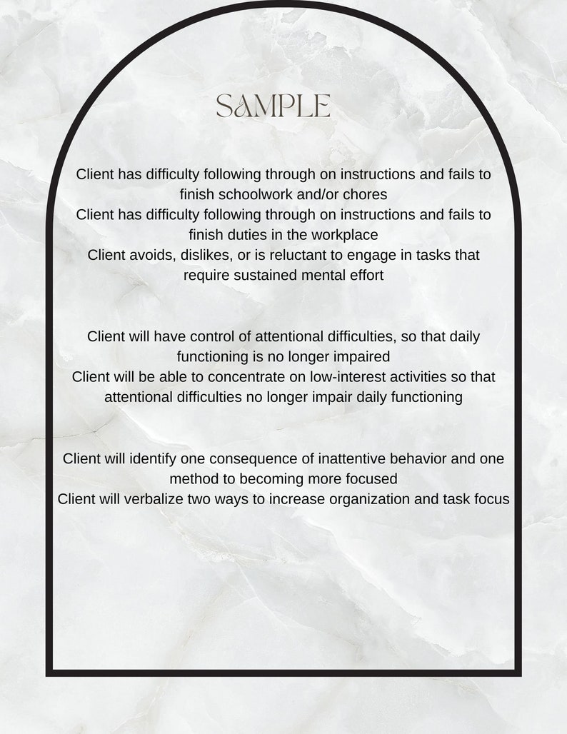 Sample Psychotherapy ADD Treatment Plan, Therapy Goals and Objectives ...