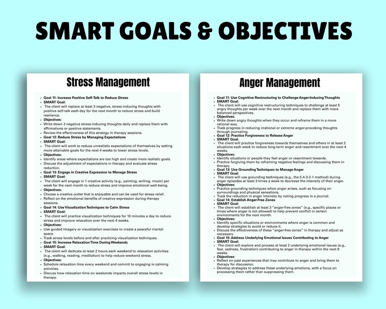 Therapy Goals & Objectives Treatment Interventions Therapist - Etsy Canada