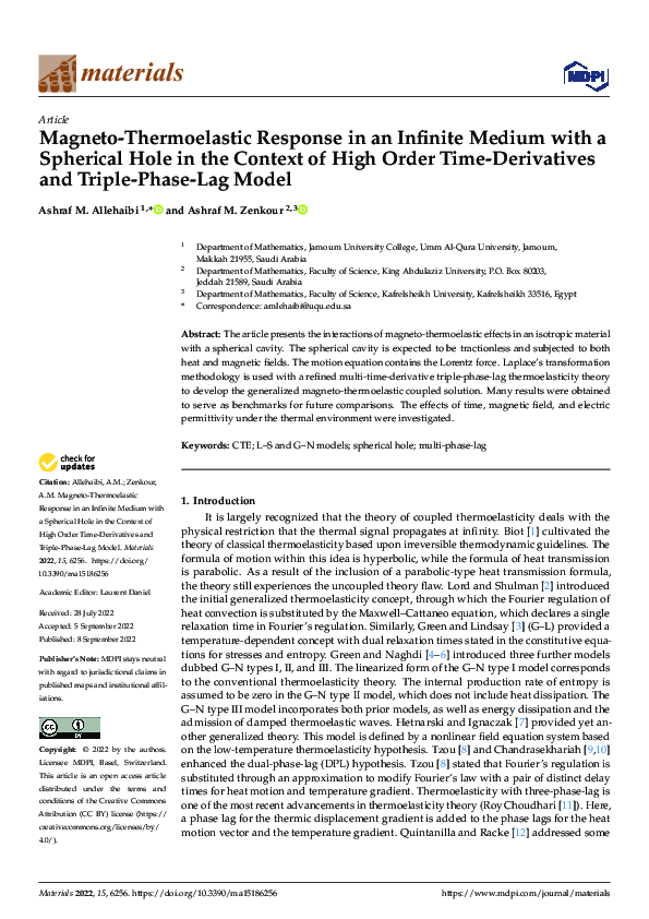 (PDF) Magneto-Thermoelastic Response in an Infinite Medium with a ...