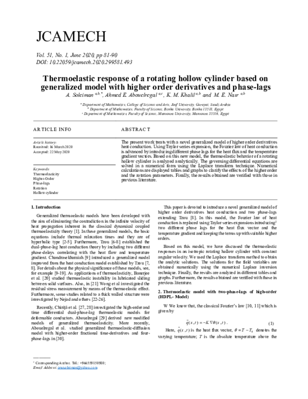 (PDF) Thermoelastic Response of a Rotating Hollow Cylinder Based on ...