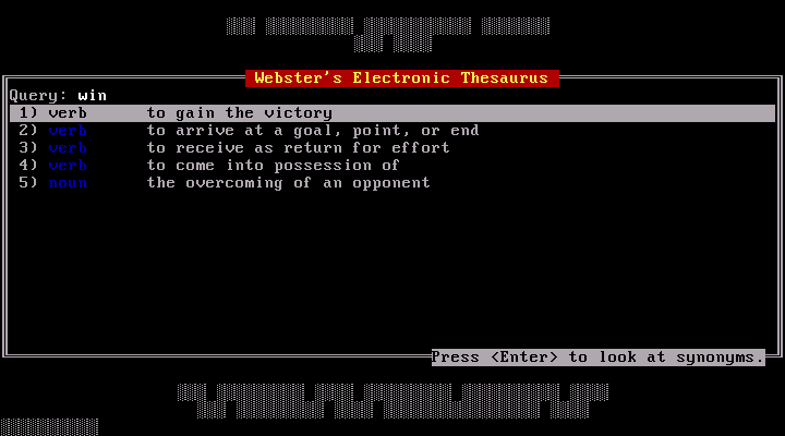 WinWorld: Webster's Electronic Dictionary and Thesaurus 1.0