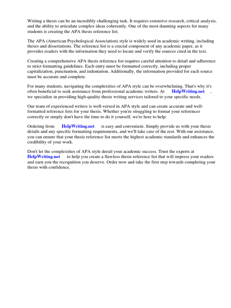 Apa Thesis Reference List | PDF | Apa Style | Citation
