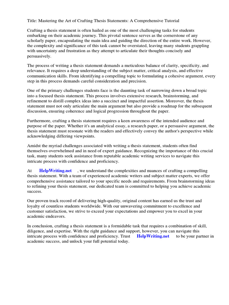 Thesis Statement Tutorial Write A T | PDF