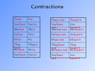 Learn English Contractions | I've, You've, He's, She's, We've, They've ...