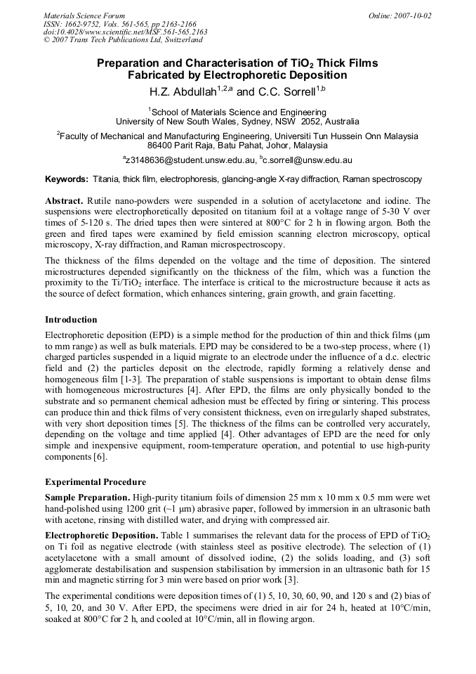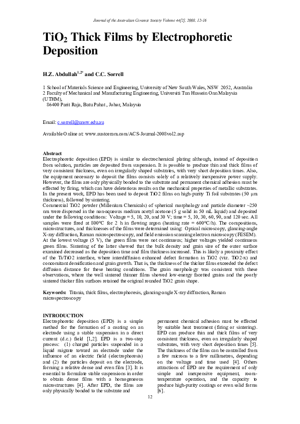 Preparation and Characterisation of TiO2 Thick Films Fabricated by ...