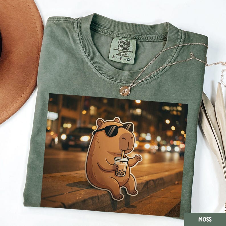 Funny Capybara Drinking Boba Bubble Tea Shirt, Cute Capybara Meme ...