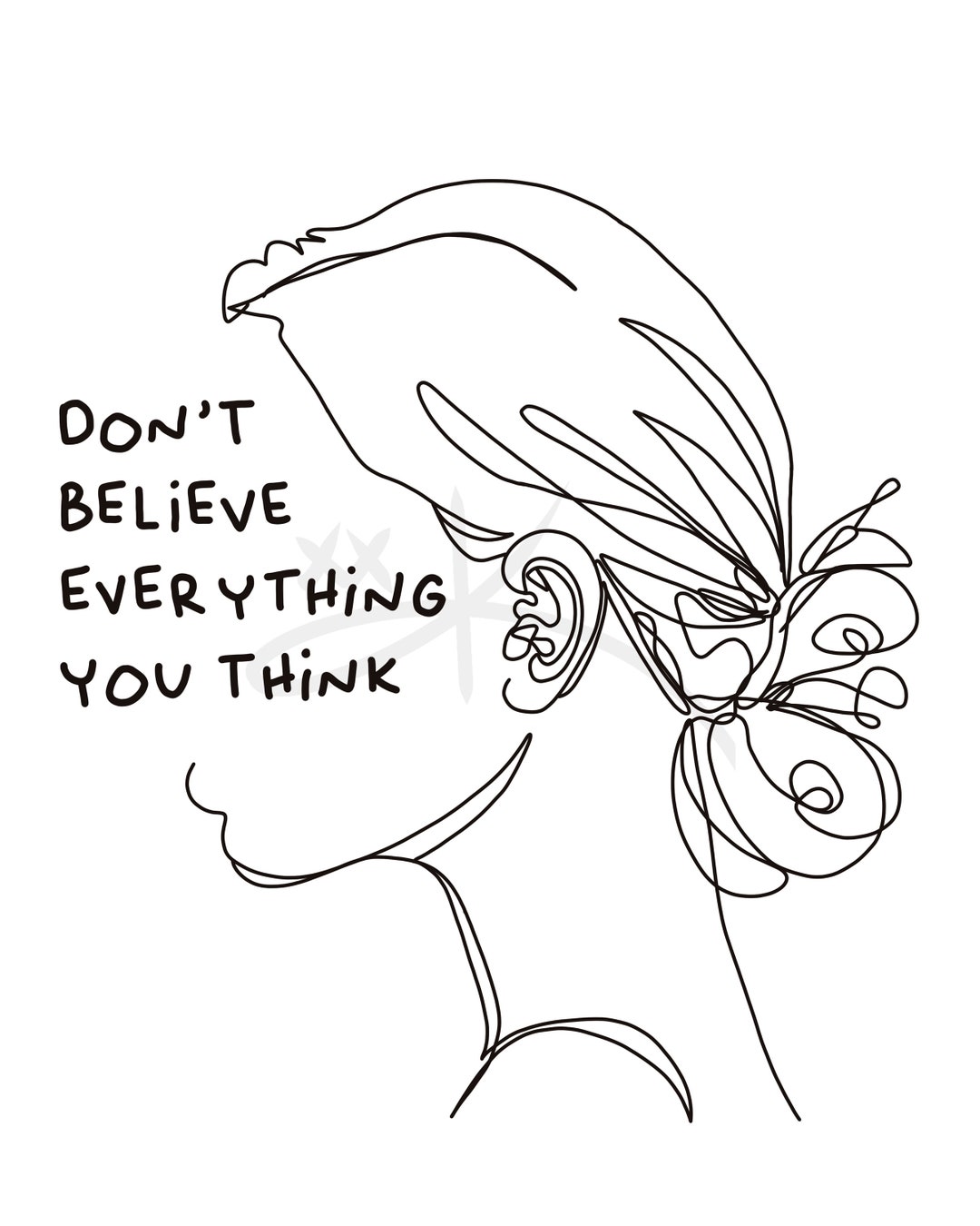 Don’t Believe Everything You Think Line Art, Inspirational Quote Art ...