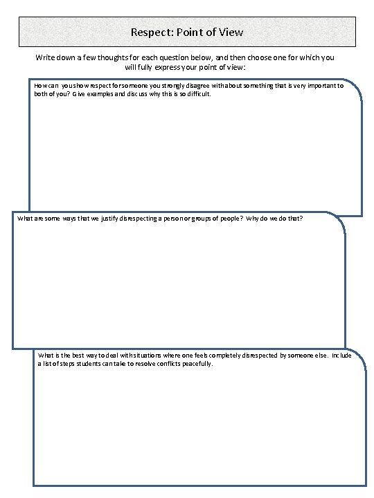 Respect Writing Prompts Worksheet for Students by Miss Managed | TpT