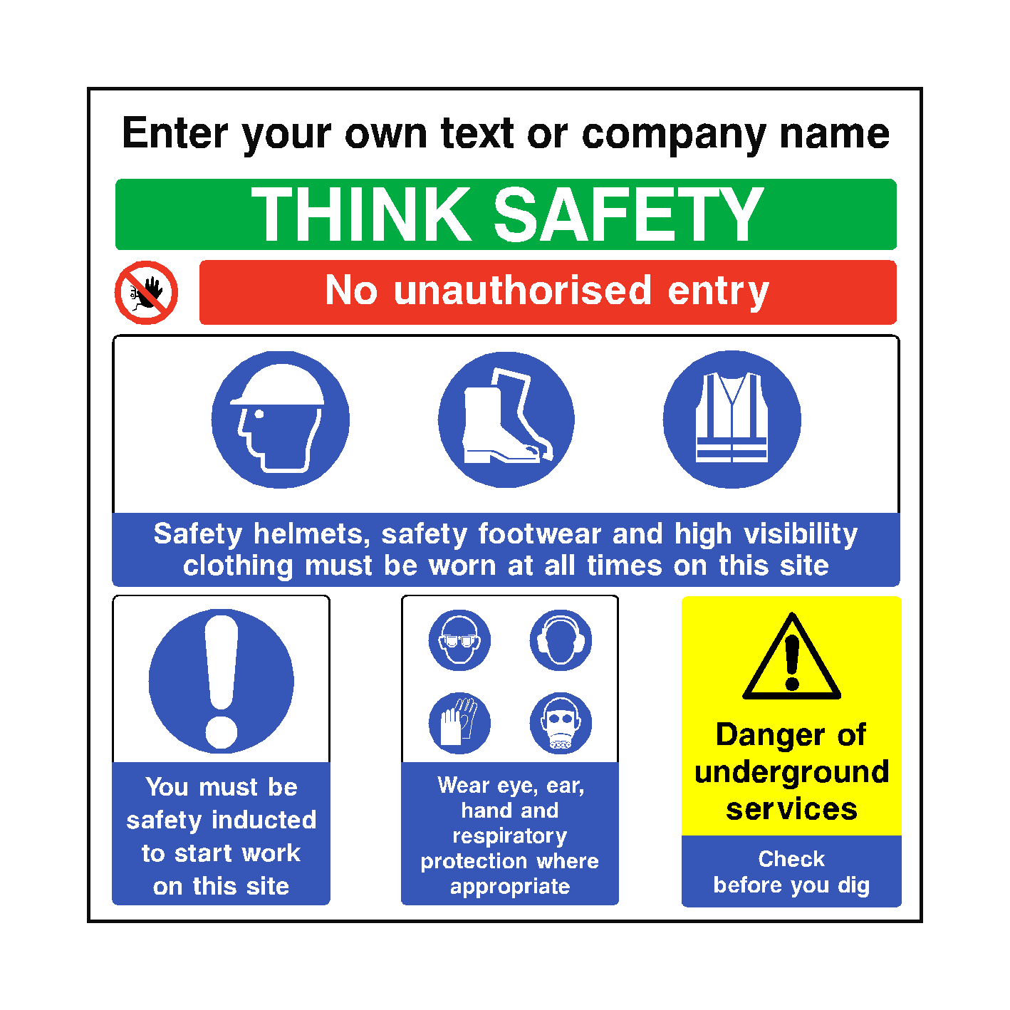 Construction site Think Safety sign, UK Stock Photo - Alamy