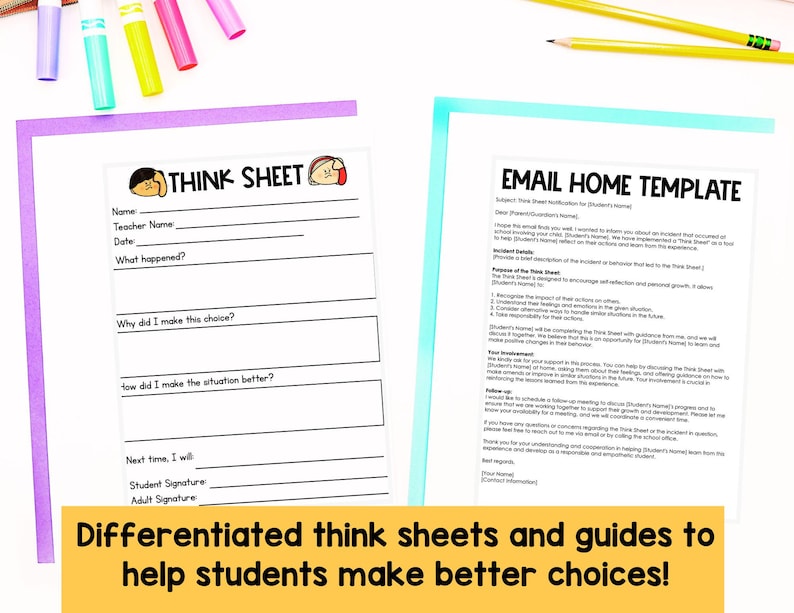 Think Sheet - Reflection Packet for Behavior - Etsy