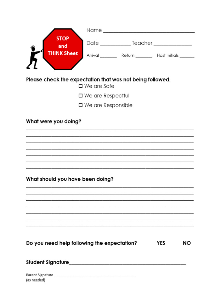 Behavior Think Sheets | Think sheets, Student reflection, Positive ...