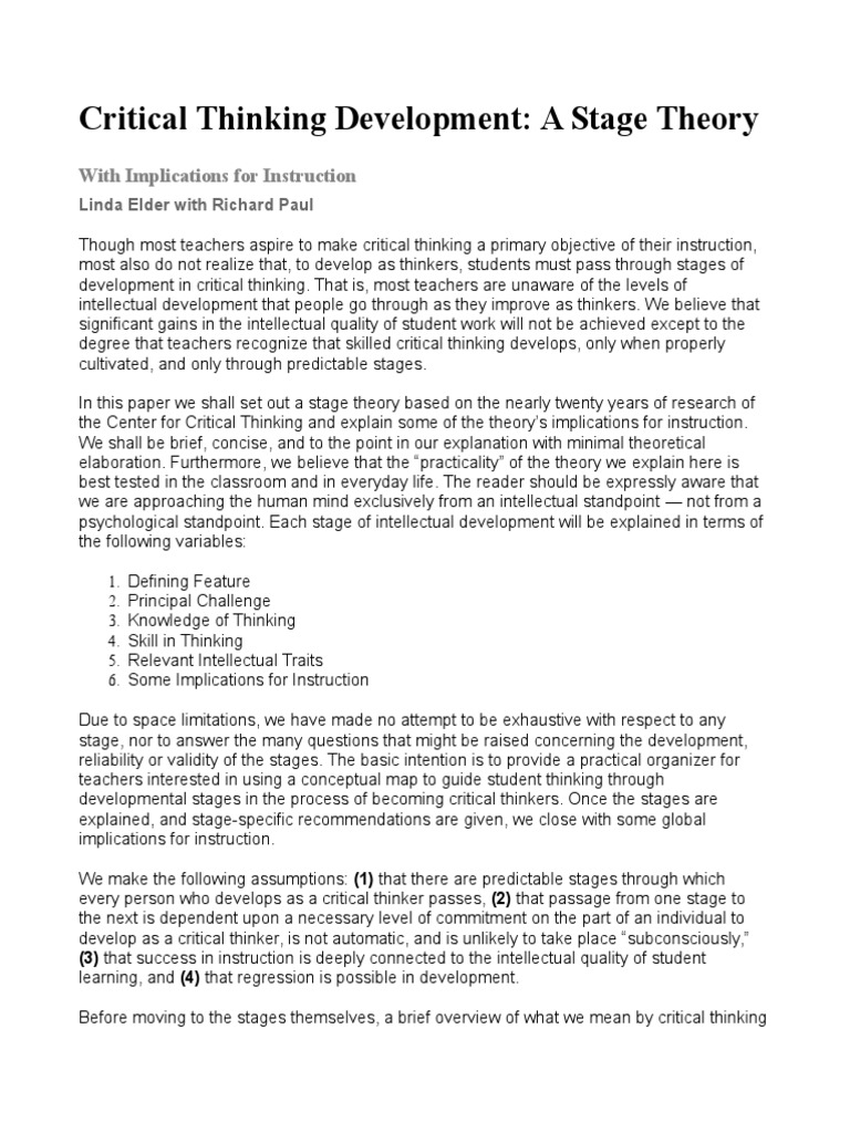 Stages of Critical Thinking Development | PDF | Critical Thinking ...