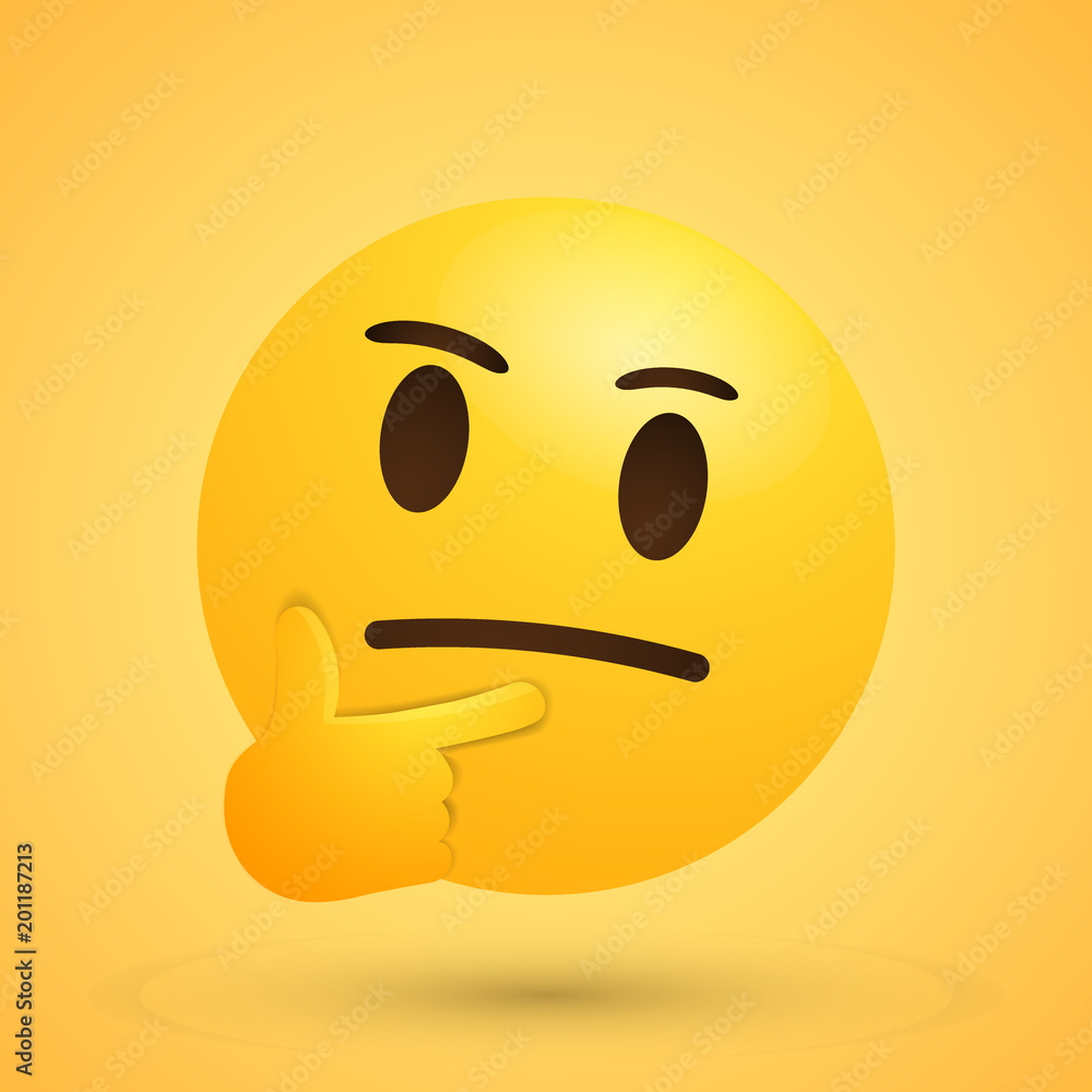 Cute thinking emoji face with hand on chin expressing curiosity ...