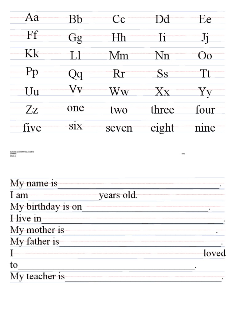 Cursive Writing Templates For Kids - Free Math Worksheet Printable
