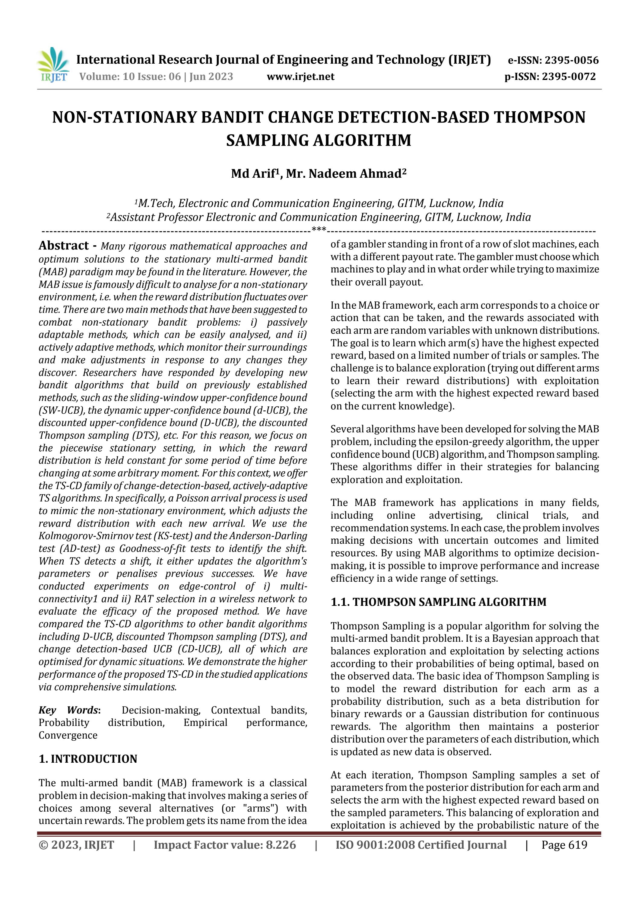 (PDF) NON-STATIONARY BANDIT CHANGE DETECTION-BASED THOMPSON SAMPLING ...
