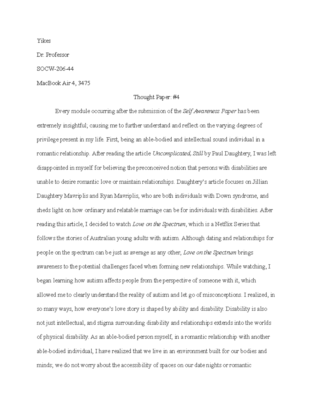Thought Paper #4 - Yikes Dr. Professor SOCW-206- MacBook Air 4, 3475 ...