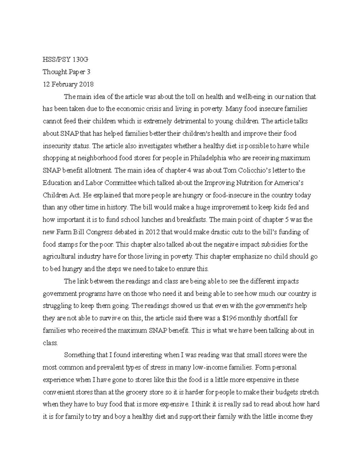 Feb 13 thought paper - HSS/PSY 130G Thought Paper 3 12 February 2018 ...
