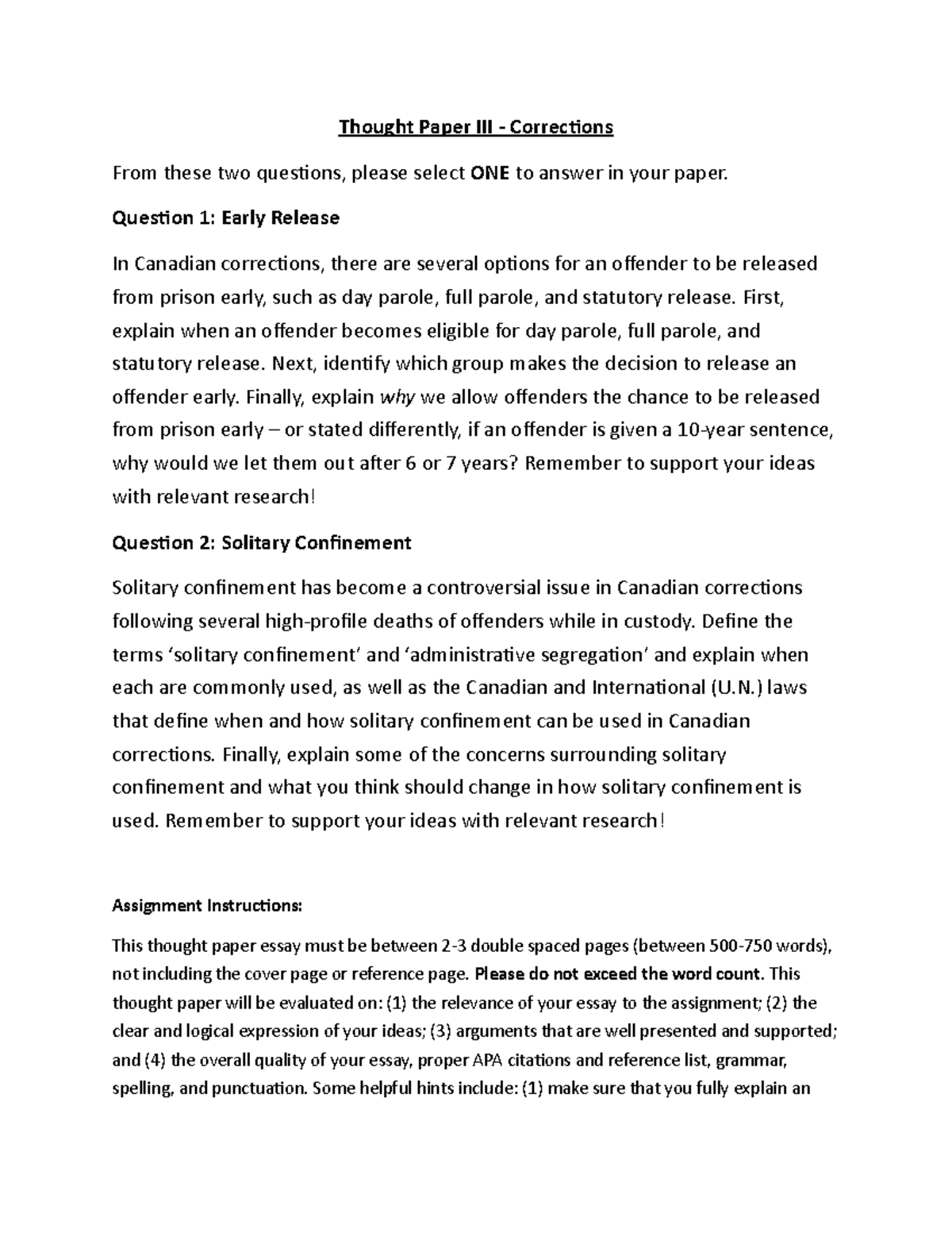 Thought Paper III - Assignment Instructions - Thought Paper III ...