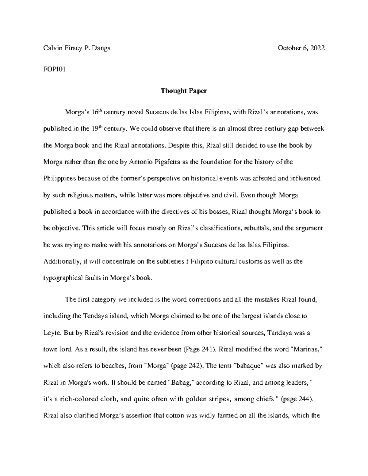 Assessment 5-Thought Paper-M2 Danga-CFP FOPI01 - Calvin Firscy P. Danga ...
