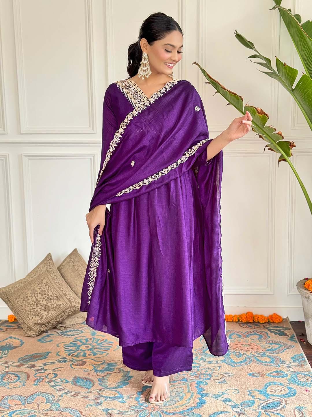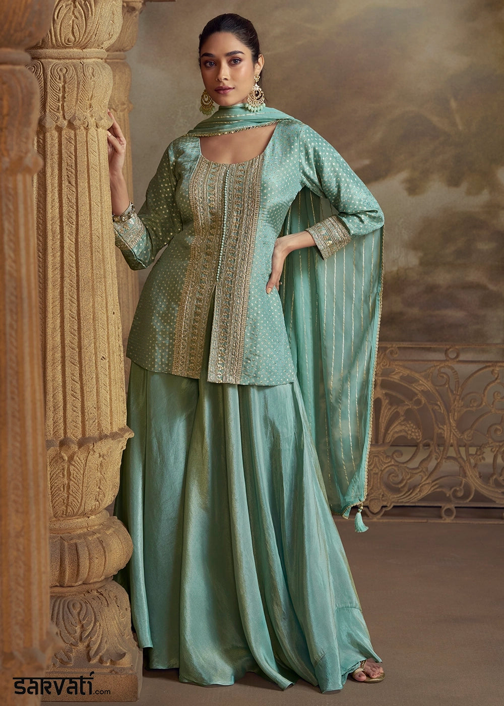Cadet Blue Georgette Palazzo Set with Thread Work | Sarvati – House of ...