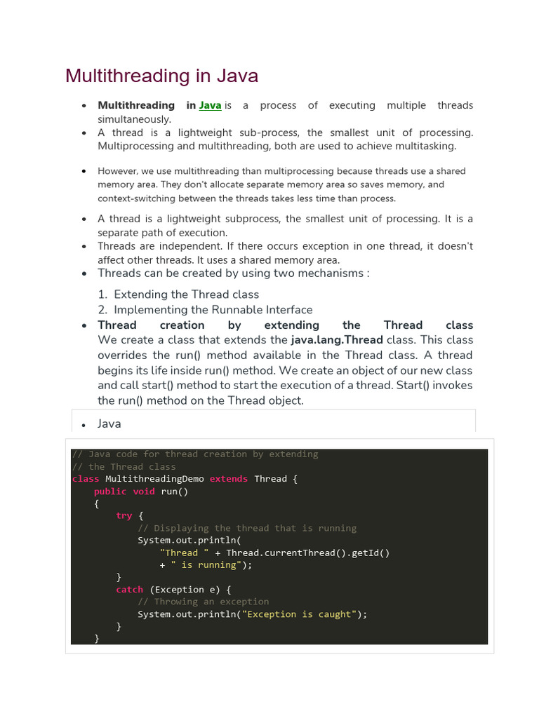 Multi threading in java: concepts, methods, and best practices - Studocu